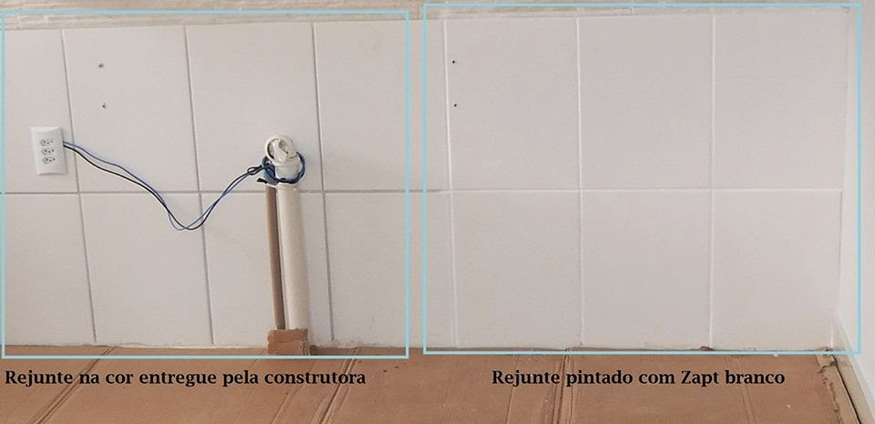 Eu sei que eu falei que seriam somente 10 dicas, mas a minha amiga queria arrancar o revestimento branco entregue pela construtora so por conta do rejunte cinza feio que eles entregaram. Nao precisa mesmo, veja o que um zapt renovador de rejuntes (encontrado em casas de material de construcao) pode fazer pelo seu rejunte. Economize horrores e mantenha seu revestimento.