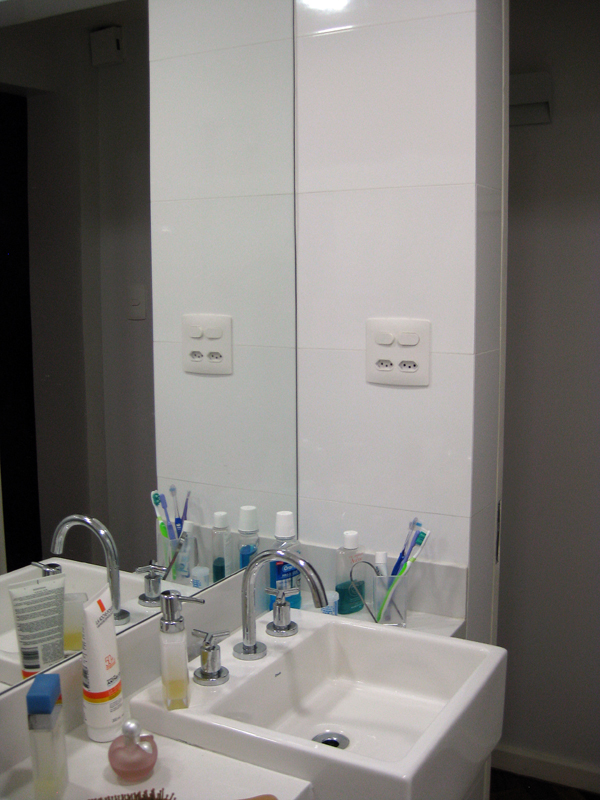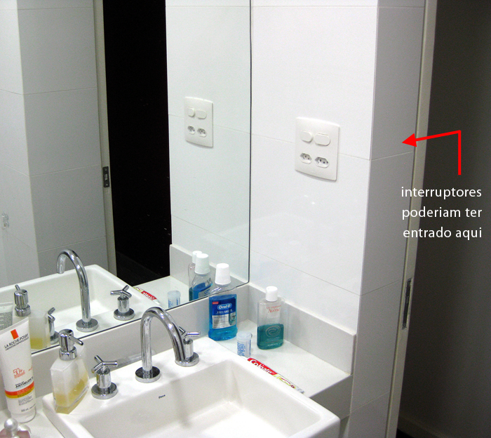 Reforma terminada e você olha pra lateral da pia e pensa: “Caraca!!! Por que é que eu coloquei essa porcaria de interruptor de luz logo aí? Seria o lugar perfeito pra pendurar a toalha de rosto!!!”