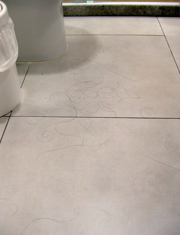 Beleza. Tratei de escolher um chão cinza claro dessa vez. Crente, crente que seria a solução… Ledo engano. Cinza claro também suja! Principalmente se você tiver longos cabelos escuros…