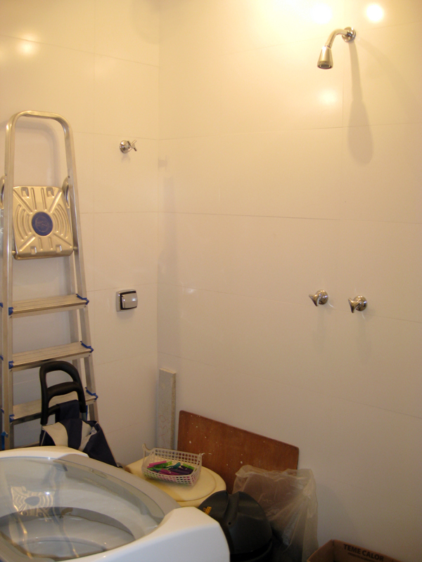 | Interruptor bem no meio da parede onde poderíamos ter um toalheiro… |